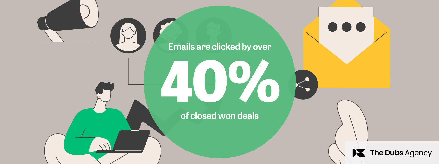 According to B2B revenue attribution platform Dreamdata, its benchmark research shows marketing emails are clicked in more than 40% of won deals and have a meaningful impact on the length of the customer journey.